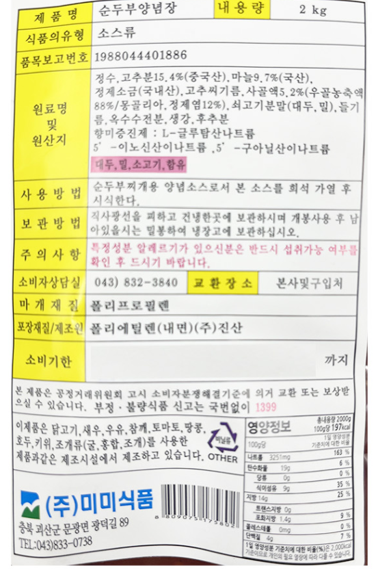 순두부찌개 전용 양념장으로써,