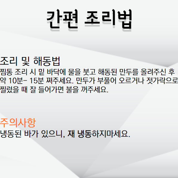 * 찬물로 해동해주세요. 해동후 재 냉동은 하지않는게 좋습니다.