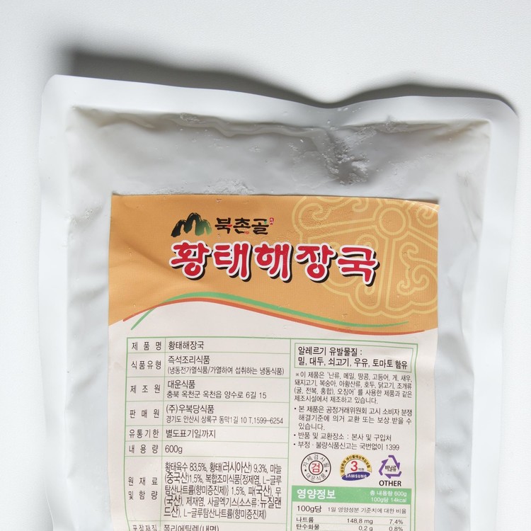 제조원: 대운식품/충북 옥천군 옥천읍 양수로 6길15 판매원: ㈜우복당식품/경기도 안산시 상록구 동막1길 10